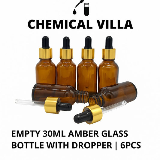 30ml Amber Glass Dropper Bottles (Set of 3, 6) – UV Protection, Leak-Proof, Reusable for Essential Oils & Serums