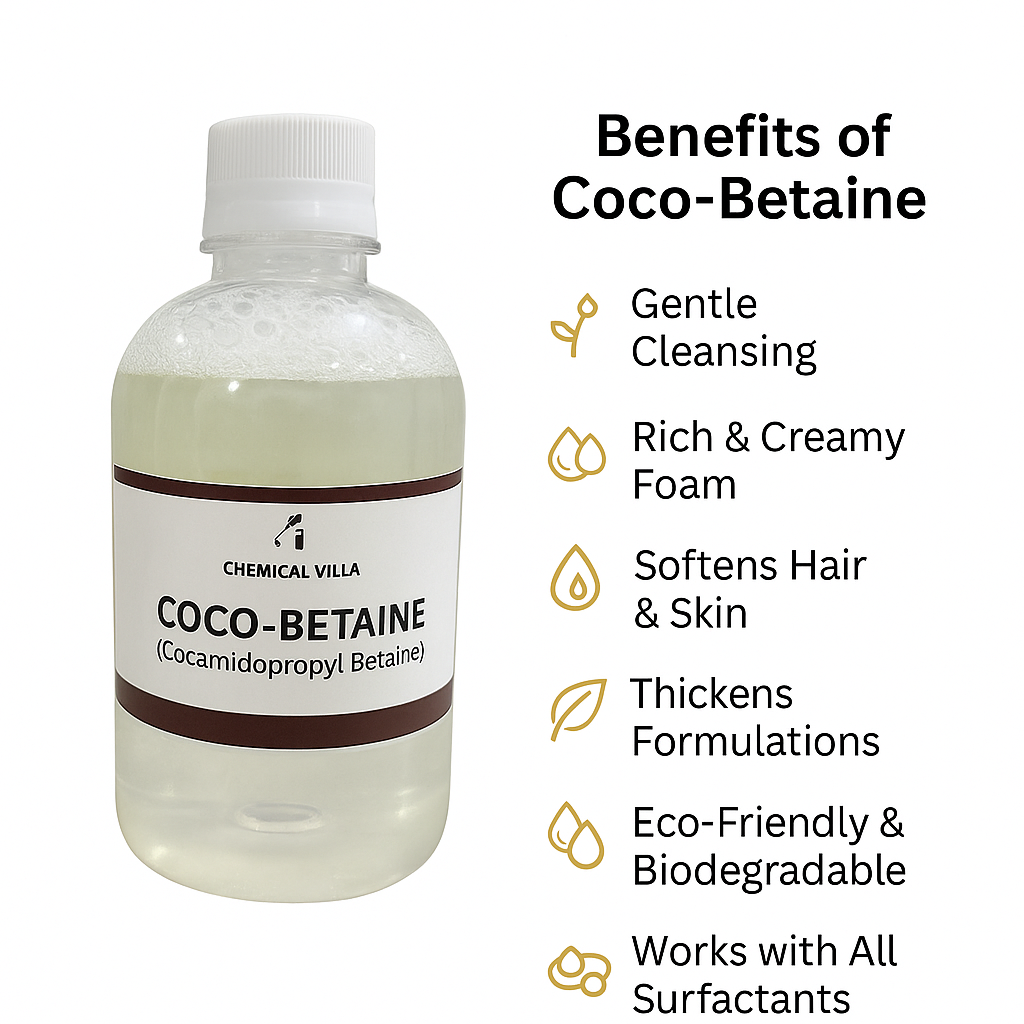 Coco-Betaine, also known as Cocamidopropyl Betaine, is a gentle, biodegradable surfactant derived from coconut oil. It is widely used in shampoos, body washes, face cleansers, baby products, and mild household cleaners thanks to its excellent foaming and conditioning properties.